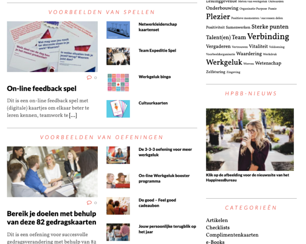 Werken aan werkgeluk is vaak een kwestie van doen en dan ook vooral dingen ánders doen. In gesprek met organisaties die het HappinessBureau begeleidt op weg naar (nog) meer werkgeluk ontstond het idee om materialen en informatie op één site bij elkaar te brengen.