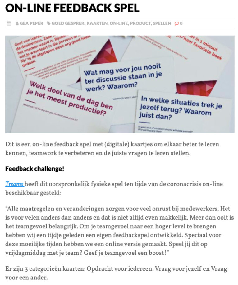 - “Tsjonge, jonge wat een mooie en inspirerende site hebben jullie gemaakt. Er staat inmiddels al zo veel content op dat het lastig is om te kiezen waar te beginnen. Kortom een mooi pareltje in werkgelukland!”